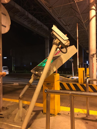 7月5日22點(diǎn)03分,機(jī)電設(shè)備維養(yǎng)中心接到臺州收費(fèi)所當(dāng)班班長小馬電話,稱該所ETC入口綜合顯示屏及抓拍攝像頭被一輛大客車撞彎,事故還導(dǎo)致出口欄桿不能正常工作,影響了出口車輛正常通行。