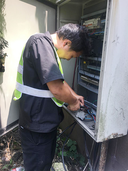 圖為修復(fù)后的隧道口路燈 對(duì)于修復(fù)被盜電纜,一般最直接的做法是重新再拉一根新電纜至配電箱,利用箱內(nèi)現(xiàn)成的控制開關(guān)和交流接觸器等元器件,完成整個(gè)電纜連接工作,但中心隊(duì)員考慮到此種方法不僅工作量大,修復(fù)成本高,而且存在再次被盜的可能性,如果用鋁線代替,電力傳輸又要大打折扣。于是,他們另辟蹊徑,計(jì)劃從剩余配電箱至路燈還有200余米未被盜取的電纜中截取一段,直接和洞口情報(bào)板電纜相接,這樣既能節(jié)省人力、物力,又能以最快速度恢復(fù)路燈正常工作。 當(dāng)天一早,中心隊(duì)員帶上相應(yīng)的工具和設(shè)備直奔現(xiàn)場(chǎng),在確認(rèn)電纜位置及走向后,便著手抽離洞內(nèi)電纜。考慮到洞口到配電箱電纜至少有100余米,電纜溝下面又鋪有其他眾多電纜以及之前掉落的垃圾,直接從洞口抽離根本無(wú)法動(dòng)彈。于是,中心4名隊(duì)員便每隔10米左右用撬棍撬開上面水泥蓋板,整個(gè)人跳進(jìn)電纜溝內(nèi),彎著腰一段一段抽離。抽到最后一個(gè)溝時(shí),4人頂著烈日,齊力把重達(dá)近百斤電纜抽離整個(gè)電纜溝并放置在護(hù)欄內(nèi)側(cè)草地上,隨后再?gòu)某槌龅倪@段電纜中剪取適當(dāng)長(zhǎng)度,重新鋪設(shè)后與寧向出洞口的情報(bào)板電纜相接。 臨近中午,戶外溫度不斷升高,中心隊(duì)員早已濕透衣背,為趕在一天中最熱的時(shí)間點(diǎn)前完成任務(wù),4名隊(duì)員臨近解決午餐又迅速奔赴現(xiàn)場(chǎng),拆除原配電箱內(nèi)的舊器件,將其用回到新的供電線路中,而多余的器件則捆綁打包帶回中心以留備用,節(jié)省公司后期維養(yǎng)成本。 下午1:40,經(jīng)過(guò)通電測(cè)試,9盞路燈全部恢復(fù)正常工作。集團(tuán)總工程師江輝在工程部微信群里肯定了中心工作,并提醒一線人員切記做好防暑降溫工作,注意自身身體狀況。