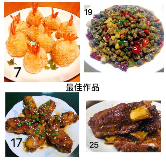圖為評委團評選 本次活動共32幅作品進行參評,最終評選出朱英英的《鳳尾蝦球》、謝海云的《饞嘴螺絲》、李菊麗的《昂翔展翅》、陳瑩的《骨色骨香》為“最佳作品”,朱英英的《孔雀開屏》、葉懿慧的《向陽花》、吳琴琴的《秋收》為“最有創(chuàng)意作品”。大家紛紛相約疫情過后,以廚會友、以食為樂,來一場百家宴一飽口福。 陳瑩