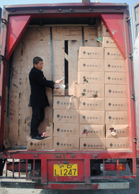 一張照片牽出一輛假冒“綠農車” 3月1日凌晨,車號為滬DL1247的廂式大貨車因假冒綠農車在臺州收費所被設卡攔截,司機因涉嫌詐騙被公安機關帶走調查。 這輛從溫州南入口、車門上印著“蔬果特快”軸限40噸的115型大貨車,在凌晨2:25分駛入臺州收費所,司機自稱運送蘋果。當檢查人員打開車廂后門,搬開疊放著兩層的蘋果箱后,發現廂體另有天地,一個用鐵條焊成的架子沿著廂壁固定在廂體內部,架子上豎著兩大片木板,木板遮擋了廂體六分之五的面積,透過木板縫隙能看到里面一箱箱的貨物。檢查人員把手伸進包裝箱里,拆開一看,里面全是電動車的配件。