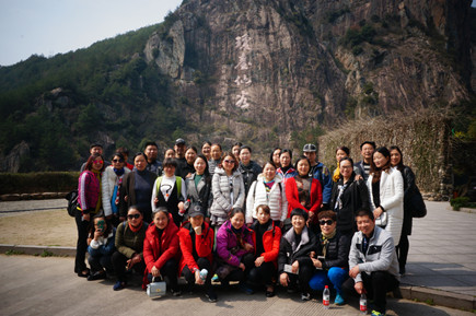 圖為第一批參加人員在瓊臺仙谷合影 上午9點30分,三個所共計40多位員工在集團公司下屬的旅行社導游小孫的帶領下,從臨海結集出發,去往“人與自然和合、人與人和合、人與社會和合”的“和合圣地”——天臺,游覽國清寺和瓊臺仙谷。“和合文化”是天臺山文化的精華,也是中華傳統文化的核心與精髓。近年來,臺州市大力推進“和合文化”品牌建設,全力打造“和合圣地”,賦予“和合文化”新的生命力。大家深處由秀美的自然山水和內涵極豐富的佛道文化構成的天臺山美景中,享受著自在與輕松,整個活動過程更洋溢著“健康、和諧、友好、愉悅”的濃厚氛圍。 此次“一日游”活動,不僅激發了女員工們積極向上、自強不息的精神,也促進了同事之間的感情,增強了隊伍的凝聚力和戰斗力,從而營造和諧美好的氛圍。 鄭瑛芝
