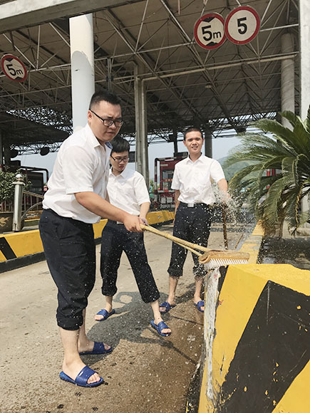 烈日下的勞動(dòng)者    7月26日至27日,溫嶺西收費(fèi)所組織全體行政人員及收費(fèi)員開展“我愛我家園”衛(wèi)生大掃除活動(dòng),共助打造優(yōu)美、舒適、文明的收費(fèi)環(huán)境。