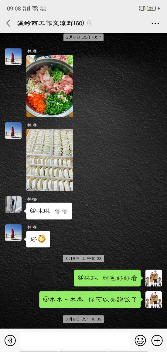 活動中,大家的參與性都很高,紛紛在微信群內曬出自己制作的美食:鹽焗雞、可樂雞翅、蔥油角角魚、溫嶺小吃豬肉飯、玫瑰南瓜饅頭……紛紛亮出了自己的拿手好菜,在群里談論得熱火朝天的同時,也不忘介紹一下自己做的菜。甚至很多男同事也紛紛曬出自己的最佳廚藝,祝福女同胞節日快樂。