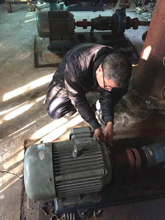 圖為工作人員修理水泵電機現(xiàn)場 因設(shè)備比較陳舊,而且原圖紙等資料不全,構(gòu)造原理無從了解,黃土嶺隧道所所長助理金衛(wèi)軍帶領(lǐng)執(zhí)勤隊,一邊推測,一邊根據(jù)水泵工作原理和電器修理經(jīng)驗尋找故障點,對設(shè)備可能出現(xiàn)的問題進行反復推敲,逐一排查,最終確定為上水位控制繼電器觸點接觸不良造成導電故障。經(jīng)過對觸點的調(diào)整和修復,以及對軸承部位進行加油和電機、水泵平衡重新調(diào)節(jié)后,設(shè)備之前出現(xiàn)的電機震動、聲音異?,F(xiàn)象和無法自動進水等問題被一一解決,消防水泵恢復正常運作。 此次檢修工作不僅及時消除了安全隱患,確保設(shè)備隨時處于良好的待命狀態(tài),在檢修的過程中,也為隊員開展了一次良好的技術(shù)培訓。 毛譯聆