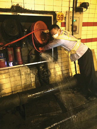 圖為工作人員在檢查消防栓