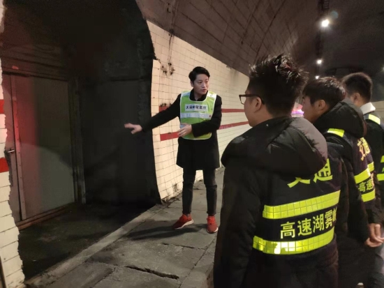 圖為羅鳴春對樂清市高速公路湖霧嶺隧道開發(fā)有限公司駐隧道南邊執(zhí)勤點的幾位新員工進行培訓(xùn) 借此次隧道清洗良機,所長助理羅鳴春對樂清市高速公路湖霧嶺隧道開發(fā)有限公司駐隧道南邊執(zhí)勤點的幾位新員工進行業(yè)務(wù)培訓(xùn),帶他們進入隧道熟悉隧道內(nèi)消防箱、人通、汽通的位置,并告知平時執(zhí)勤時的工作任務(wù),詳細(xì)解說了隧道封道、卡口、路面執(zhí)勤、施救的操作流程,希望他們能盡快融入工作,為大溪嶺-湖霧嶺隧道平安暢通貢獻力量。臺溫雙方將持續(xù)合作,共同管理,共同維護好這條隧道。 陳智慧