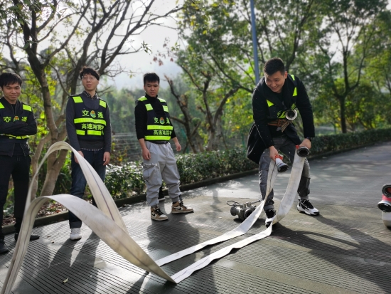 圖為樂(lè)清公司員工在水帶操作演練 大溪嶺隧道所執(zhí)勤隊(duì)就是應(yīng)急救援小分隊(duì),隊(duì)員們除了日常工作以外需要進(jìn)行不斷培訓(xùn)、演練,只有練就過(guò)硬的技能,才能嫻熟地進(jìn)行救援,確保大溪嶺-湖霧嶺隧道的平安暢通。 陳智慧