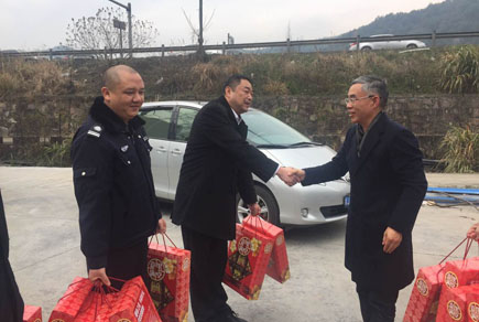 圖為公司董事長謝文君在一線慰問 每到一所,謝文君都向在崗亭內收費和監(jiān)控室內的員工送上新春祝福,道聲:“辛苦了!”詢問值班安排,了解車流量情況。當?shù)弥斕燔嚵髁刻貏e大時,謝文君要求各收費所即使是小型客車免費時間,也要合理安排上崗員工休息、吃飯時間,增強收費力量,加強各所間交流,及時掌握車流量變化,維護好通行秩序,確保安全暢通。要求各隧道所加強監(jiān)控,時刻關注隧道內車流變化,及時提醒過往司機減速慢行通過隧道,確保過往司乘人員過個祥和平安的春節(jié)。 此外,謝文君還到食堂、宿舍查看員工在節(jié)日期間的飲食和住宿情況。了解在崗員工個個精神飽滿、熱情洋溢,謝文君感到欣慰,鼓勵大家繼續(xù)努力,提供優(yōu)質的文明服務,樹好公司形象。