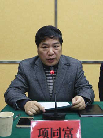 圖為公司安全總監(jiān)項同富總結2017年綜治安全生產(chǎn)工作和部署2018年安全生產(chǎn)工作