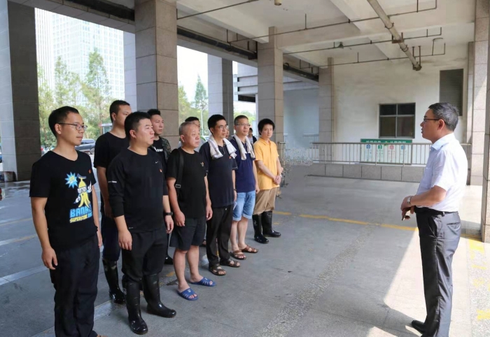 集團董事長、總經(jīng)理陳文波勉勵隊員們“不忘初心、牢記使命”,發(fā)揮黨組織戰(zhàn)斗堡壘作用和黨員干部先鋒模范作用,積極開展志愿活動,為臨海市災后恢復和重建貢獻力量。