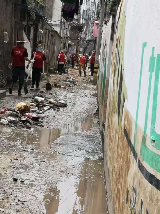 圖為臺州高速志愿者支援災區(qū)重建現(xiàn)場 在臨海古城赤城路米篩巷,臺州高速集團的志愿者們頂著毒辣的太陽,不怕臟不怕累,積極為災后重建貢獻力量,清理路面淤泥、垃圾,保障路面清潔以及道路順暢。 真情傳遞溫暖 愛心匯聚力量, 面對災后重建, 臺州高速集團用實際行動, 彰顯鐵軍精神, 承擔社會責任, 展現(xiàn)使命擔當。