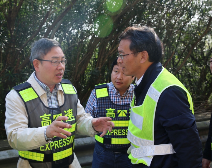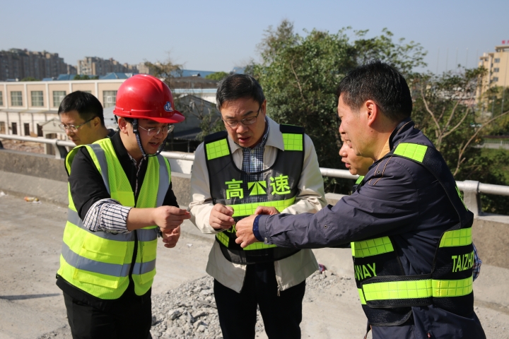 10月31日上午,臺(tái)州高速集團(tuán)董事長陳文波在總工程師江輝的陪同下,趕赴甬臺(tái)溫高速公路溫州方向黃土嶺隧道、橋梁維修加固工程施工現(xiàn)場,檢查施工進(jìn)展情況。