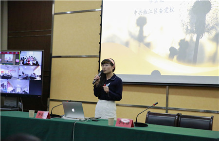 圖為椒江區(qū)委黨校李金花老師作專(zhuān)題報(bào)告