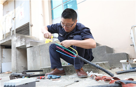 此次比賽項(xiàng)目是空氣斷路器三相四線電纜連接,要求參賽者在規(guī)定時(shí)間內(nèi),利用液壓鉗、電工刀等工具將一根長(zhǎng)度約50cm,橫截面積為25平方毫米電纜套接銅鼻子,并連接空氣斷路器后模擬送電。看似一場(chǎng)比較簡(jiǎn)單的比賽,但里面涉及到的知識(shí)點(diǎn)卻不少,包括配送電操作流程、電纜線連接順序、液壓鉗使用技巧等等。接電纜,安全送電,這也是平時(shí)工作中經(jīng)常會(huì)碰到的問(wèn)題。
