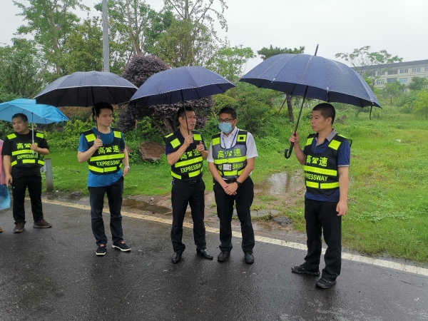 集團總工程師江輝到一線開展汛期安全隱患及 收費站入口管控檢查   6月8日上午,集團總工程師江輝帶領工程養護部、征費管理部、安保部、養護公司等人員,冒雨開展汛期橋隧邊坡安全隱患排查及收費站入口管控檢查。