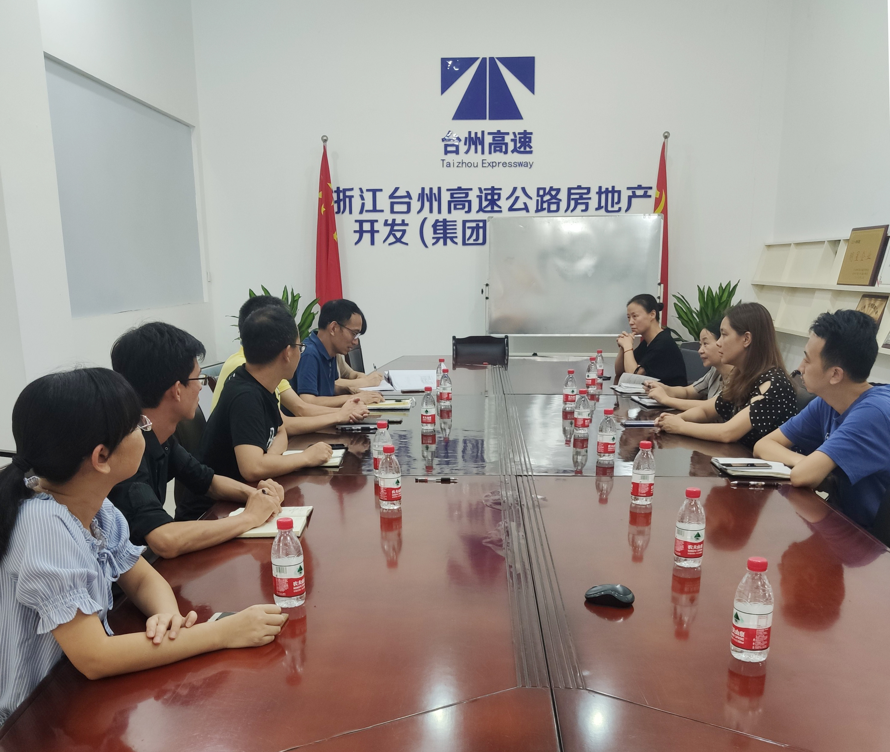 圖為座談現(xiàn)場 檢查過程中,高速房產(chǎn)公司董事長汪利國、總經(jīng)理彭楊軍分別就房產(chǎn)公司各地塊項目進展、資金安排情況及項目存在的問題進行了介紹,章彩霞在聽完房產(chǎn)公司管理層的介紹后,對房產(chǎn)公司存在的問題提出一些解決意見。