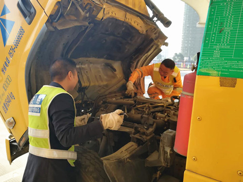 在這期間,每天從10點至19點,各所要經歷無數次分流高峰,為了保障主線通暢,避免因事故擁堵,集團施救中心除了日常維護保養常態化,施救、理賠管理正規化外,在免費通行及大流量期間,開創“2+1+n”新模式,(即2組施救車在塘嶺和黃土嶺周邊巡邏預警,一組在中心待命及多組預備),積極配合指揮中心,做好預警響應,有效保證一旦發生事故,就能隨時出動救援。據統計,該中心在免通行的7天時間里共處理41起事故。