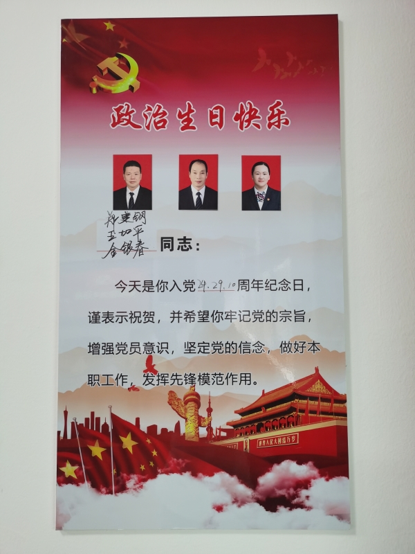 最后,全體黨員重溫入黨誓詞,站在黨旗下莊嚴地宣讀入黨誓詞,鏗鏘有力的聲音震撼了每一位黨員的心靈。 活動過后,黨員紛紛表示,記住自己的“政治生日”是黨員對黨的信仰,紀念自己的“政治生日”是黨員對黨的感激。他們會時刻提醒自己是一名黨員,在工作和生活中用黨員的身份嚴格要求自己,勇挑重擔,發揮先鋒模范作用,為群眾做出表率。 陳智慧